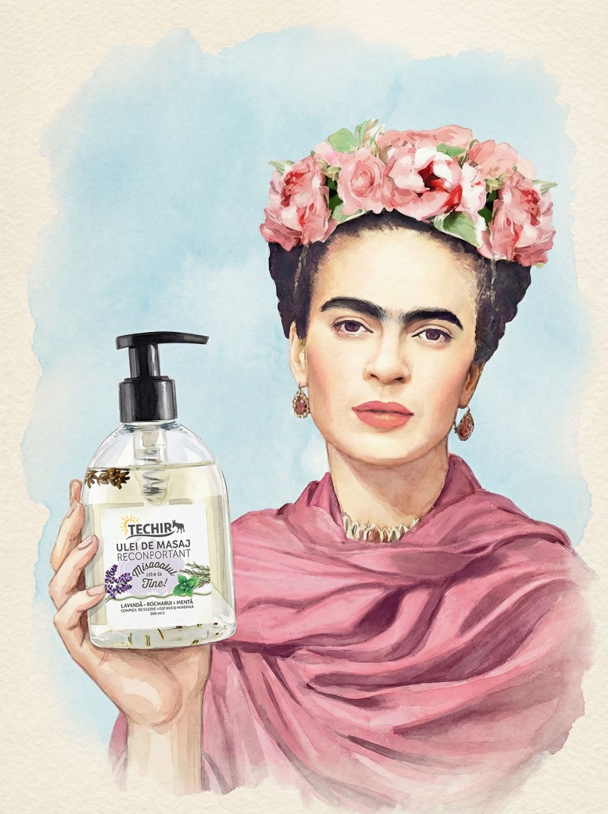 Un ulei creat pentru momentele când corpul cere blândețe și reconectare. Combinația de lavandă, mentă și rozmarin acționează sinergic – calmează durerile musculare și articulare, stimulează circulația și readuc echilibrul după efort sau tensiune acumulată. Uleiurile de struguri, avocado și ricin hrănesc pielea în profunzime, lăsând-o catifelată și elastică. Exact cum Frida înțelegea grija de sine: nu ca lux, ci ca necesitate. Nu ca abandon – ca reconectare. Descoperă uleiul de masaj.