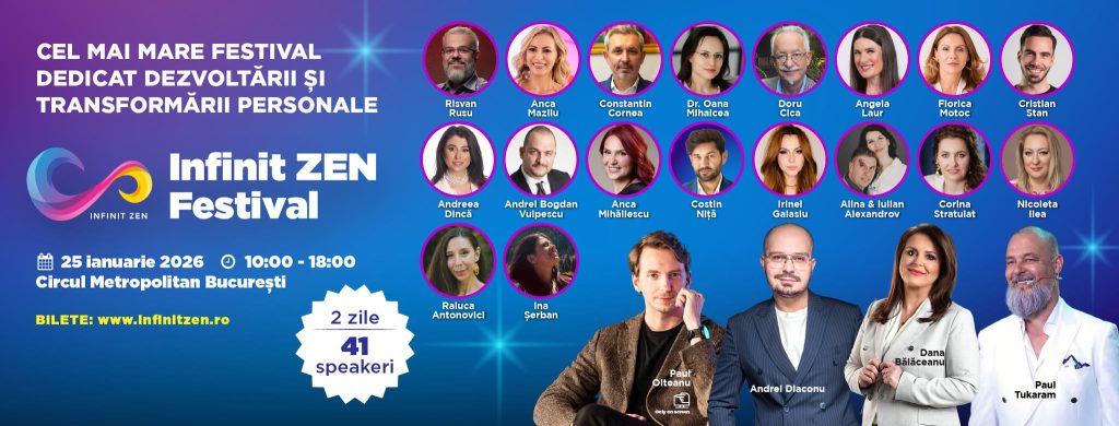 Infinit Zen Festival este cel mai mare festival din România dedicat dezvoltării și transformării personale, reunind experți în psihologie, psihoterapie, spiritualitate, mindfulness și sănătate. Ceea ce ne-a atras la acest eveniment este viziunea sa holistică – recunoașterea că suntem ființe complexe, cu nevoi fizice, mentale, spirituale și emoționale care nu pot fi separate.